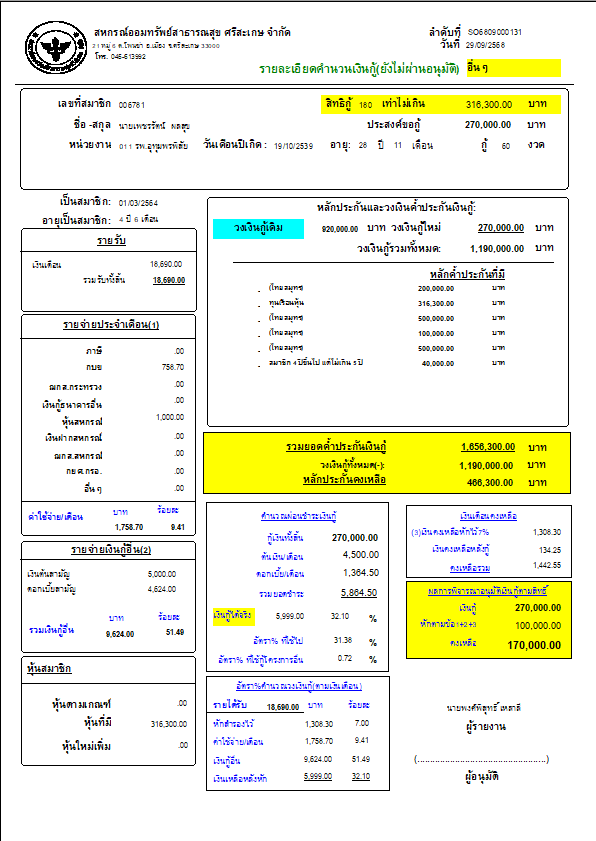 12/7/2023 2:07 PM 2718702 แบบฟอร์มกู้เงินสามัญ (ค้ำประกัน 5 คน ) ปริ้นหน้าเดียว.pdf