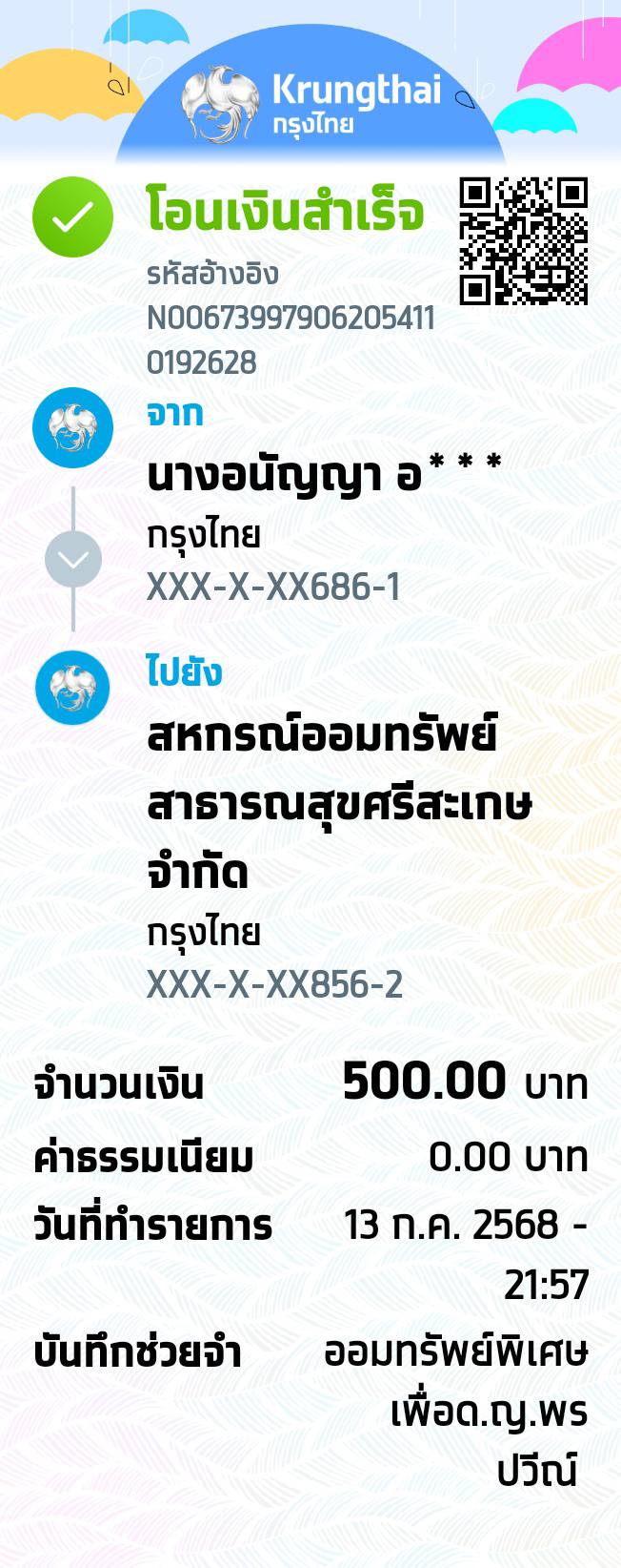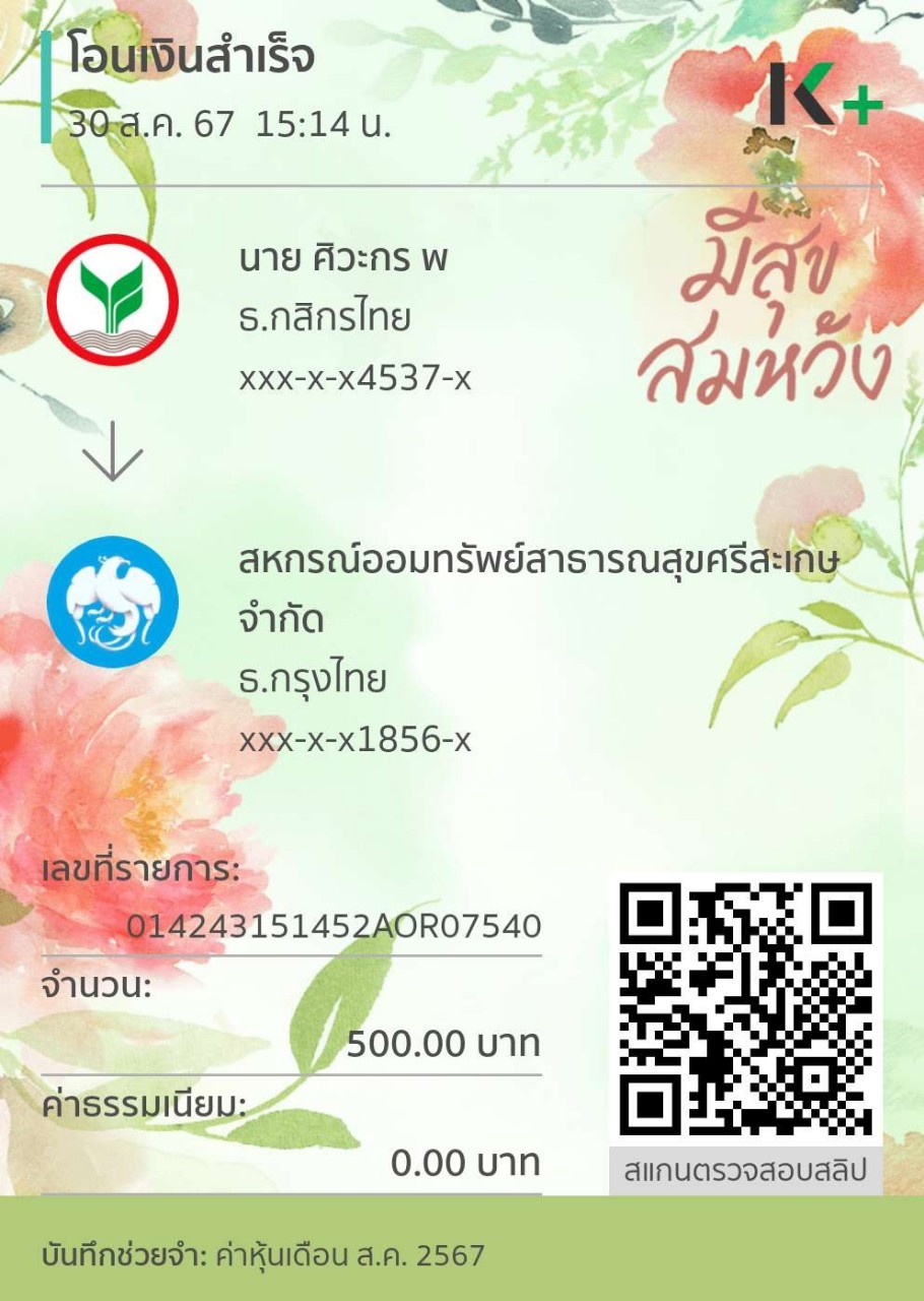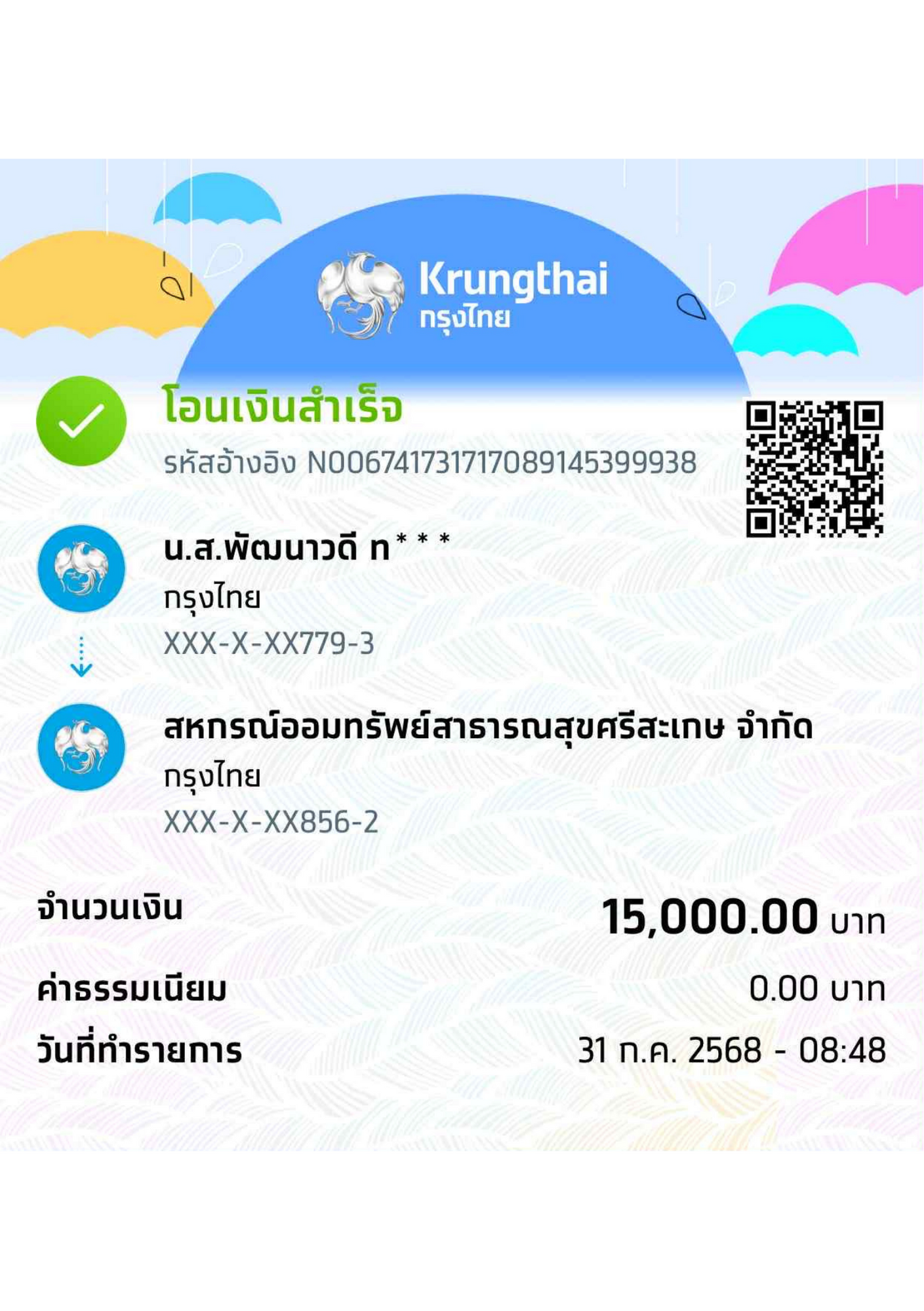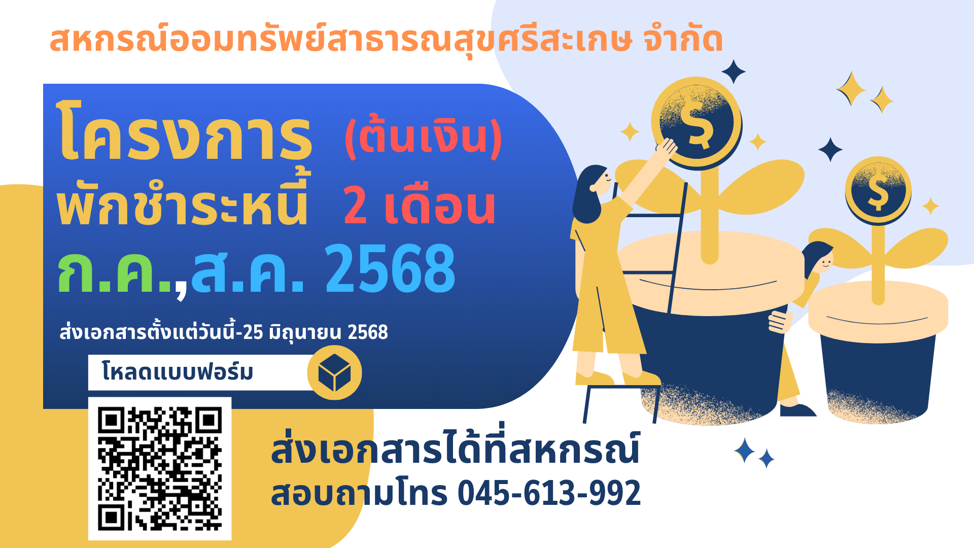 5/28/2024 8:50 AM 1278967 แบบฟอร์ม พักชำระหนี้เงินกู้(ต้นเงิน)แก่สมาชิกสหกรณ์ 1 เดือน ตั้งแต่เดือนกรกฏาคม 2567.pdf