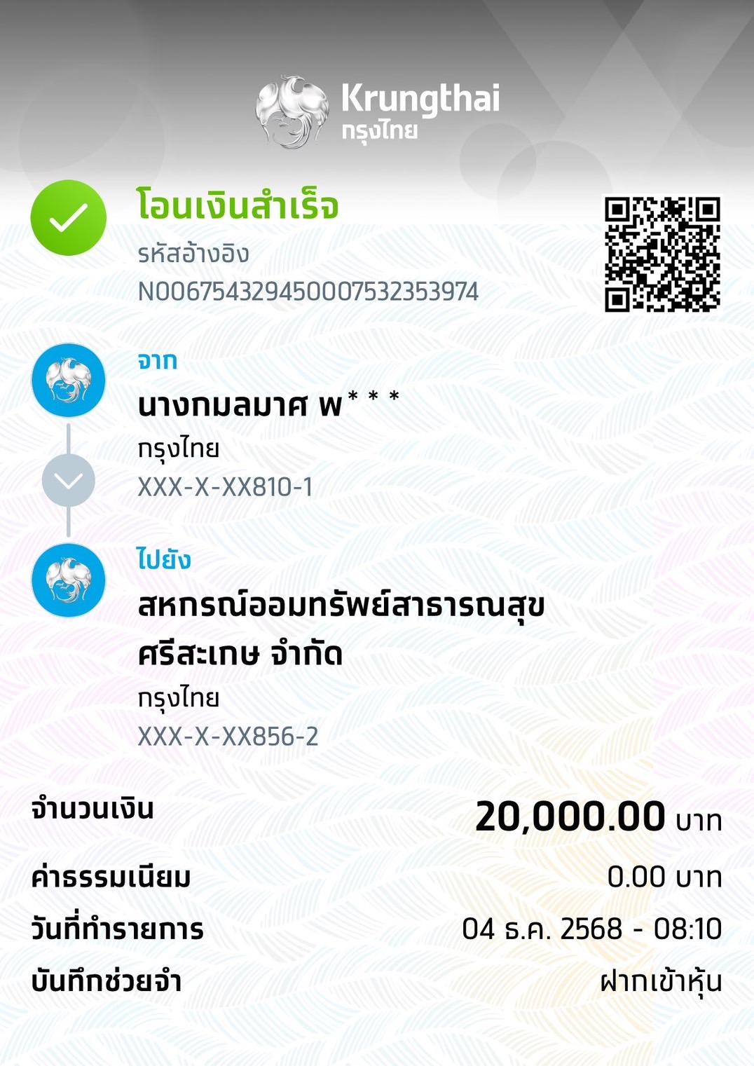 10/17/2025 4:32 PM 705467 แบบฟอร์มทะเบียนสมาชิกสหกรณ์และทะเบียนหุุ้น สอ.สธ.ศรีสะเกษ(30 ก.ย.2568).xlsx